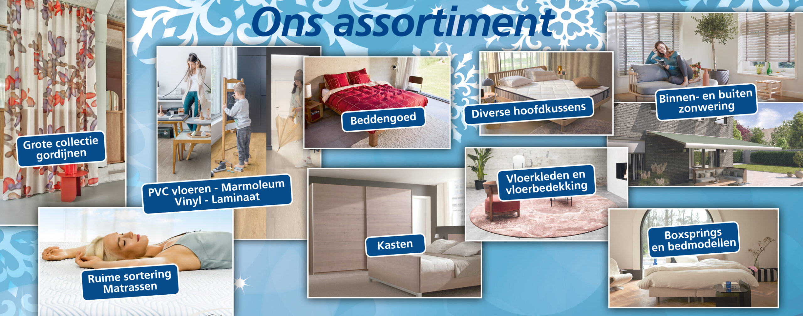 Wij hebben ons in de loop van de jaren ontwikkeld tot een eigentijdse woonspecialist. Wij zijn van oorsprong een solide familiebedrijf met hart voor de regio. Onze passie is om een vertrouwd adres te zijn waarbij iedereen zich welkom voelt. De persoonlijke woonspecialist met aandacht voor u wensen uit onze totale collectie kwaliteitsmerken voor wonen en slapen. Waaronder PVC Vloeren, laminaat, raamdecoratie, bedden, bedtextiel, kussens, behang, zonwering en raamdecoratie. Speciaal voor u bij de interieurspecialist Wessels Wonen en Slapen in Wesepe.